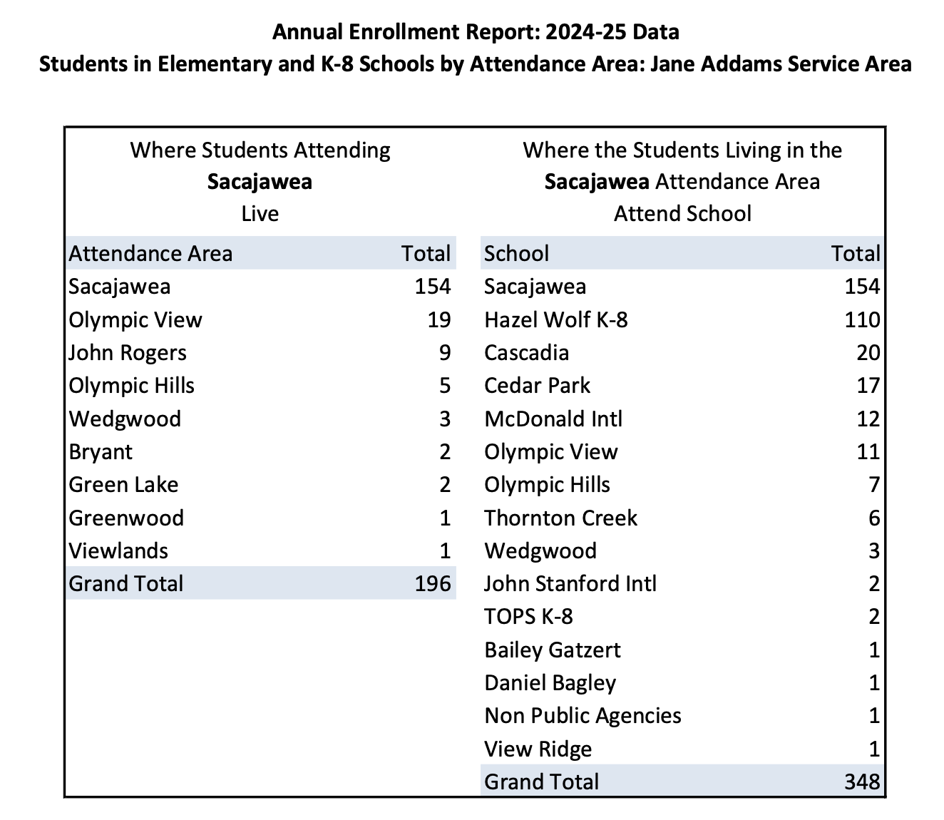 Nearly a full third (32%) of students zoned for Sac instead attended Hazel Wolf elementary in 2024-25. Sacajawea-zoned students comprise 25% of Hazel Wolf’s K-5 student body!